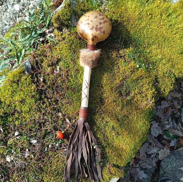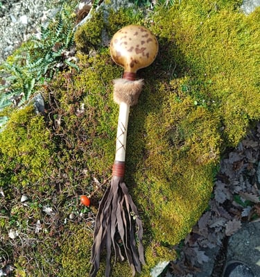 Hochets chamaniques, mailloches, bâtons de parole, masques de transe, sacs de médecine